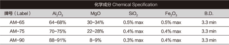 鎂鋁尖晶石具有體積密度大、熱震穩(wěn)定性好、抗侵蝕能力強等特點,主要用于生產(chǎn)高檔鋁鎂磚、高性能鋁鎂質(zhì)澆注料、滑動水口、鋼包襯磚、連鑄